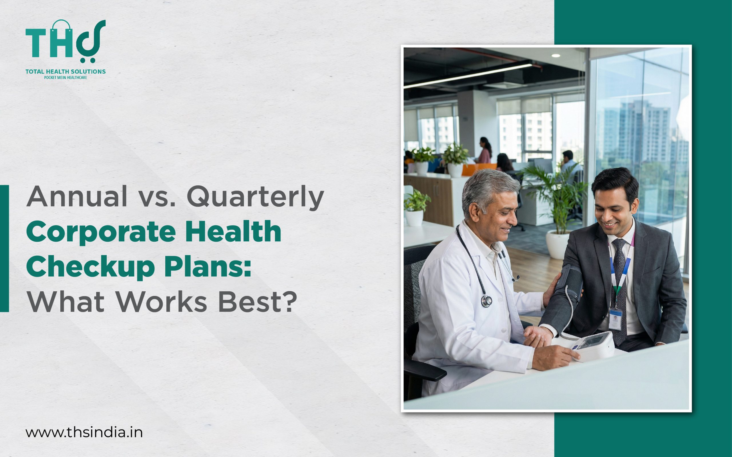 Choosing between annual and quarterly health checkups depends on your workforce needs, risk factors, and budget. The right plan helps prevent health issues, improves productivity, and builds a healthier workplace culture. With Total Health Solutions, you can customize annual or quarterly corporate health checkup programs, delivered seamlessly at your workplace by experienced medical professionals.